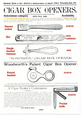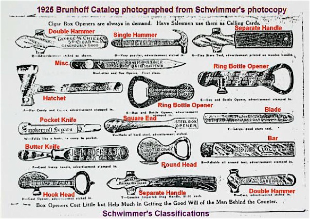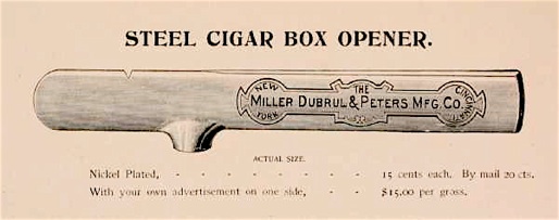 A century later, box-opener collector Mike Schwimmer asked: “Why cigar box openers? Pocket knives, table knives, screw drivers and assorted other household implements were available to do the relatively simple job of opening up a wooden cigar box.” He decided, “Yes, and you can cut your fingernails with a scissors, too, but the proper tool always gets the job done best and faster.”