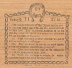 The law was rewritten in 1890, changing the wording of the Caution Notice, numbering each provision, thus making it distinctly different from that on U.S. made boxes of cigars. The new wording went into effect in July, 1891, but was permitted any time after November 1890. Canadian boxes with the earlier version Caution Notices are seldom found today.