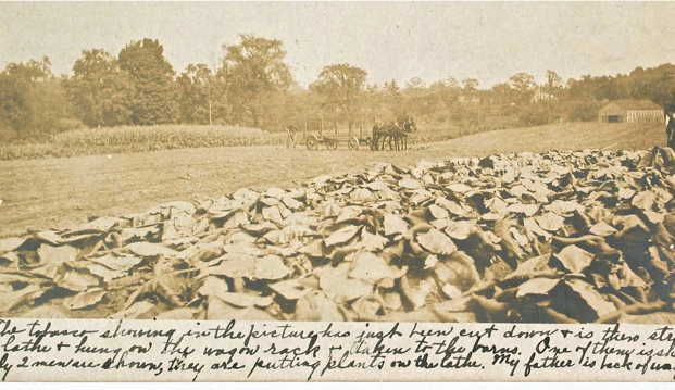 It must be cured. Floyd first came to the Valley to evaluate early experiments in curing Connecticut tobacco in the same manner as did Cuba, Florida and Sumatra. He judged the results to be a slight improvement in uniformity of color, but not enough to sell for more money. When John Stewart began planting, tobacco curing involved hap-hazard subjection of leaves to burning charcoal in closed barns. This less-than-scientific approach all too often resulted in leaf unfit for market. Stewart began testing various combinations of temperature, time and humidity, the three variables in curing. The instructions he came up with would, if followed exactly, guarantee a good cure. It was widely adopted.