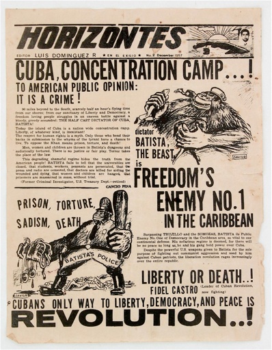 This 1957 flyer paints an ugly picture of Cuba under Batista, whom Castro soon thereafter unseated. Batista was not Cuba’s only corrupt leader. Similar complaints could have been leveled against nearly every Cuban government since the Spanish arrived.