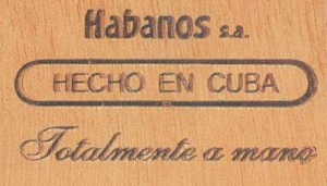 In another of many efforts to thwart counterfeiting, the name of the official exporter of Cuban cigars, Habanos SA, appears on a band angled across the top right of Cuban boxes of cigars made after 1994. Boxes made in sizes and shapes other than standard may have the band in other places on the top of the box. Slide top boxes, for example, often have the Habanos band on the lower left.