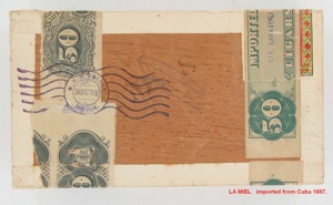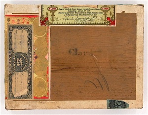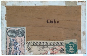 Frontmarks (vitolas) and color marks sometimes appear on the bottom. The pencil ‘scribble’ is the packer’s notation of the color of cigars. It is unusual for the custom’s officer’s cancellation to be as clear or as nicely placed.