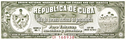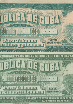 A big wide green Guarantee Stamp was authorized July 16th, 1912. That date appears on all similar Cuban Guarantee Stamps up to the present day.