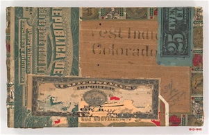 In 1910, denominations were dropped and the stamp completely redesigned. Date is below the central vignette.