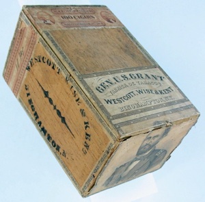 Hot brand era boxes are often quite plain with no inner, making an 1866 box like this picturing Gen. Grant between the Civil War and his Presidency particularly desirable.