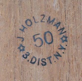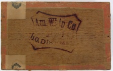After 1872 boxes could be incised with a round ID the size of a quarter containing the maker’s name in the top arc, tax district and state in the bottom arc and number of cigars in the center. This Type II ID (far left) is used throughout the 1870’s, making it easy to identify boxes from that decade.