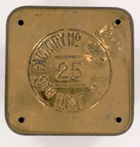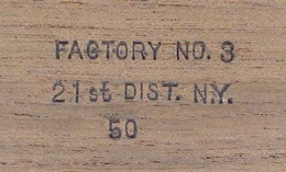 Tin was authorized for cigar boxes in 1870. From the beginning ID’s were required to be permanently stamped into the tin. The example [left] shows an ID in which the factory number is being changed because the company who owned the brand switched cigar makers. Fortunately for the guy who had to hand-make the change on already existing cans, both the old and new factory were in PA’s huge 9th Tax district, specialists in custom brands.