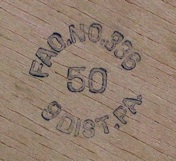 The feds called this info the “factory brand” because it was required to be hot branded with iron dies like the crates and barrels of an earlier age. Collectors and historians call them “ID’s” to avoid confusion with trademark brand names.