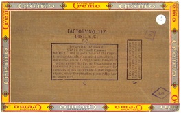 Cigar makers were required to identify themselves on cigar boxes between 1866 and 1959, and in modified form for a few decades thereafter. ID’s were an important element in the war on tax evaders because they told a tax inspector three vital facts: who made the cigars, where the factory was located, and how many cigars were in the box. Factory IDs are the only printed matter on a cigar box you can count on to be true.