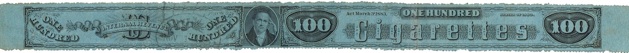 If you find a cigar box with a long strip stamp for 50 or 100 cigarettes, it does not mean they were imported. The tax office used weight to determine whether a box contained cigarettes or cigars. If they didn’t weigh more than 3 lbs. per thousand, both imported and domestic cigars were classified and taxed as cigarettes. The tax stamps and labels on many small boxes of 50 or 100 19th century domestic small cigars read “cigarettes” or “all tobacco cigarettes” on the label but were actually small cigars. After 1897, small domestic cigars had their own 50 and 100 stamp.