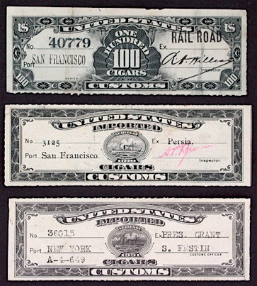Passengers arriving from Havana frequently had their luggage searched from the 1800’s on. When cigars were found in passenger luggage, inspectors were authorized to collect the appropriate taxes and use methods other than standard customs stamp to indicate that taxes were paid.