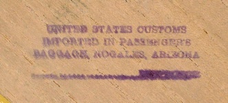 Both the overprinted stamp and the round rubber cancellation are from 1933 and rare, as is the undated Nogales “port” of entry stamp.