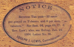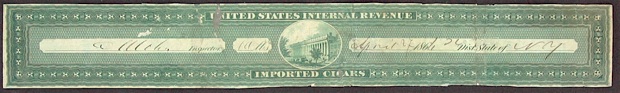 Cigars have been imported from Europe and Cuba since the 1700’s, and taxed since shortly after the Revolutionary War. It wasn’t until the U.S. Civil War, however, that stamps were issued to put on boxes of cigars to show taxes had been paid.