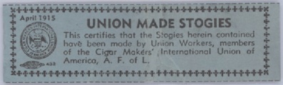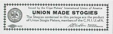 Stogie Union label/stamps are scarce from any period as stogie makers were few and seldom unionized.