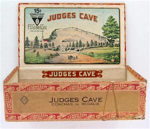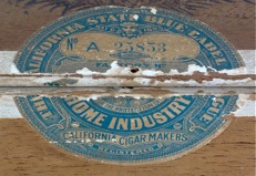 Until the 1930’s, Union Locals were supposed to cancel their “Blue Label” stamps, indicating the Union Local number, the cigar factory’s Federal ID, and the date. Many different shapes and styles of cancellation are seen. Dates, when readable, can be an important clue to the date of a box.