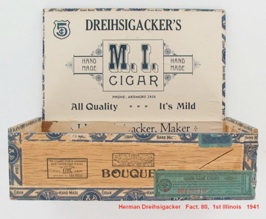 Standard placement of CMIU labels was similar to that of tax stamps, usually on the opposite side of the box. This, in my opinion, was adequate for identifying Union cigars in closed boxes, but no Union identification was visible when the box was open in a crowded cigar counter. The placement on M.I. is no improvement.
