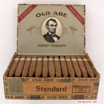OLD ABE is a very typical 1920’s box. You can see the Tax Class Notice on the right and the orange on blue tax stamp (1917-1942) on the left. Front or bottom, if there’s a Tax Class Notice on the box it can’t date before 1917.