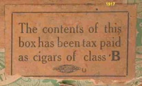 if a tax class notice is pasted on and does not mention the price of the cigars, it dates 1917-1919. If the tax class notice is printed on and gives a range of selling prices, it dates 1919-1959.