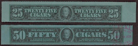 Between 1863 and 1878 dozens of cigar tax stamps had been issued, most of which you’ll never run into. They’re covered in detail elsewhere.