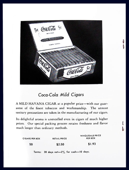 Coca-Cola cigars were sold in the open market, and given away at company banquets in the 1930's. The company also ordered a limited number of boxes of SPRITE cigars to be passed around at the event when that drink was introduced.