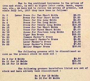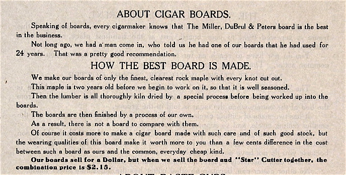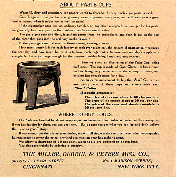 The first step to be solved centered on creating a device that would help less skilled, less experienced, less costly workers create cigars in the huge range of sizes and shapes the public demanded. As with most beginning industries, hundreds of experiments were tried before one method prevailed. Between 1850 and 1890 a flood of devices were offered.