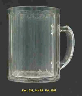 Paneled glass beer mug patented in December of 1907 which originally held 25 cigars. Buy enuff “boxes” of these cigars and you could have a set of mugs, a useful bonus decades before depression era soap companies packed dishware and glasses in boxes of soap.