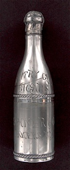 When the BLUE COMET train made its inaugural New Jersey run, they hired Fonseca to customize a label and foil for a commemorative bottle. The History Museum sold that bottle to a Blue Comet collector. Similar aluminum bottles were used by Canada’s Simon & Sons.