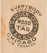 and probably more, tobacco companies solved the problem of identifying their slabs and twists of tobacco by pounding one or more round wooden plugs into each piece before it left the factory. As the illustration (right) shows, they weren’t particularly fancy, but they were effective. Users of wooden plugs as tags in their products included H.A.H. & Co. in Chicago, P. T. Co. (Pioneer Tobacco) in Brooklyn and P. Lorillard, from New York City.