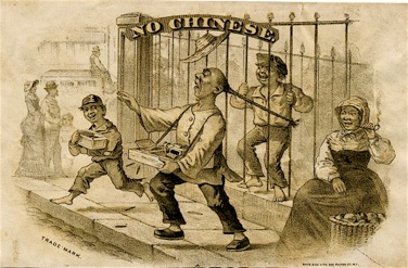 Chinese street vendors were most frequently seen in NYC, home of Boyd & Co., the lithographer behind the above racist portrayal which seems to approve of juvenile violence against them. Label not in NCM collection.