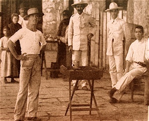Top Left: Cigar vendors were a common sight in the plazas of Cuban towns, both large and small. The warm tropical climate meant throngs of people strolling well into the late evening providing customers. c1900