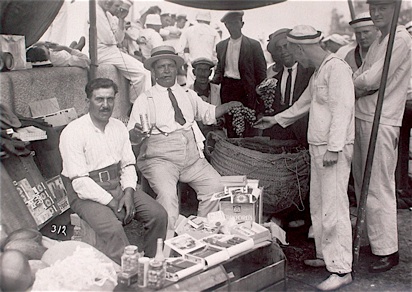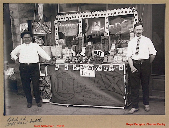 Selling at state and county fairs has been around since before the Roman empire. The here-today-gone-tomorrow nature of fairs made them a great place for a pretty girl or a slick talking salesman to get rid of merchandise of all types, materials, qualities, ages and condition. Fair-circuit seller would often buy remainders, overstocks, and seconds from jobbers and factories, then regale passers-by with a fast talking patois: “Try one, sir. They’re just as good as Cuban, but one-third the price. As good as what you get in those fancy New York tobacconists, but you save by cutting out the middleman. We don’t have the overhead. Direct from factory to you. We buy in bulk and pass those savings on to you. Trade laws prohibit me from revealing the name of the famous maker. Buy five and get one free. Buy a box and save even more.”