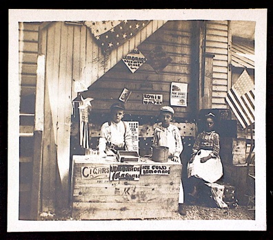 But, I must admit, I rarely think of a kid’s lemonade stand when I want a cigar. Technically, adding cigars to their inventory was illegal without a tobacco retailer’s license. c1906. Decorations suggest 4th of July.