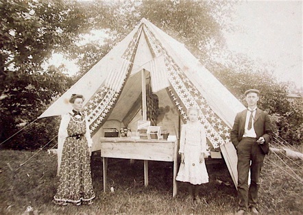 They’re selling CUBANOLA cigars in their patriotic tent, probably set up in a park on 4th of July c1900.