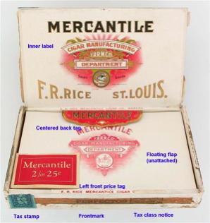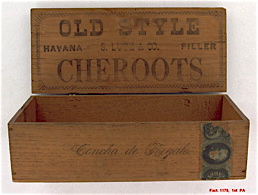 Almost all tin cans were “tin 50/up” and “tin 25/up” with the other 1% used for cans holding 10, 12 and 100 cigars. Most 50/up cans are round, though square shaped 50/ups are also found. Stogie cans are usually about an inch taller than cigar cans. P.S.: Stogies and cigars are not the same thing.