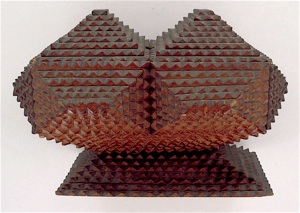 So-called ‘tramp art’ involved layers of notched cigar box wood glued to cigar boxes. These pieces were