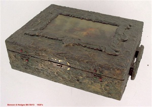 Plaster of Paris, gesso, paint, macaroni, beads, sea shells, decoupage ... they were all used to decorate cigar boxes, sometimes all at once.