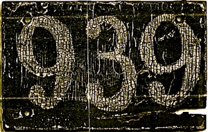 Automobile license plate from the early days when car owners supplied their own. Painted on the lid of a 1910 DON JUAREZ cigar box.