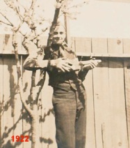 6] This lovely well sanded and dramatically designed 1-stringer was made by distinguished service medal holder Private Clarence Everingham, killed in battle at age 25 just 37 days before the end of WWI. Clarence was a HS honor student and accomplished strings player, especially known as a mandolinist. That’s his photo. Curator’s favorite