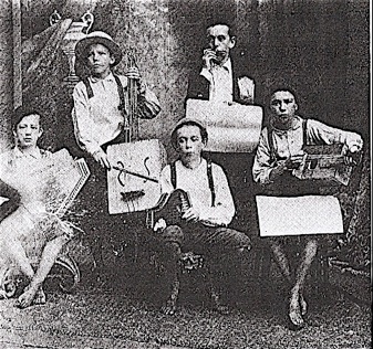 The eight boy band playing cigar box instruments (below) is the most rare image, here on an post card.