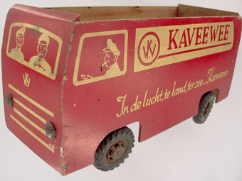 Interestingly shaped boxes are always wanted no matter where made. This truck box held 100 cigars made in the Netherlands. KaVeeWee comes from Karel Van Wely.